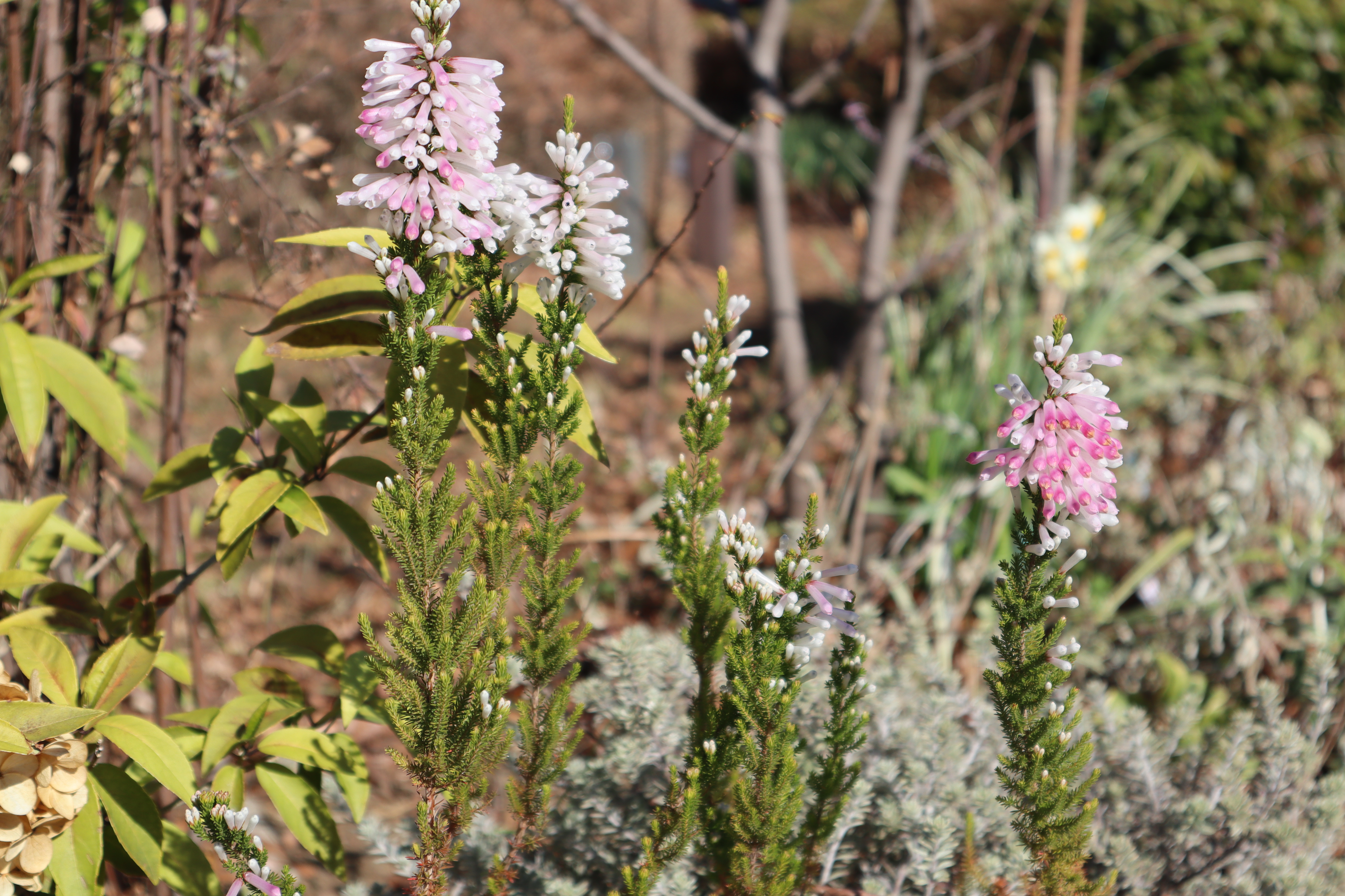 ギョリュウバイ、エリカも、花数は、まだまだ少ないですが、寒い間しっかり咲き続けてくれる頼もしい花たちです。
