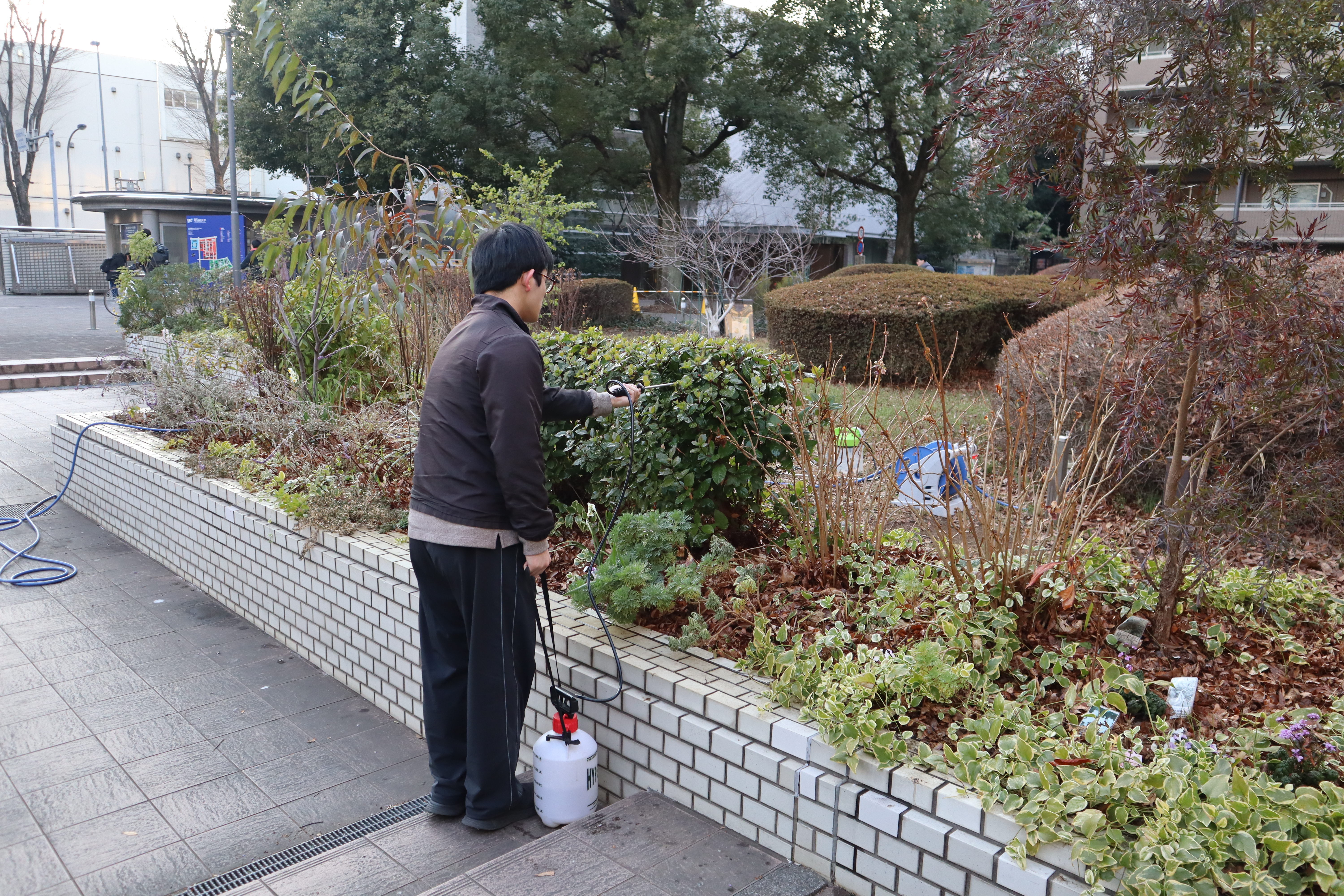 木酢液散布、水やり、枯葉とりなど