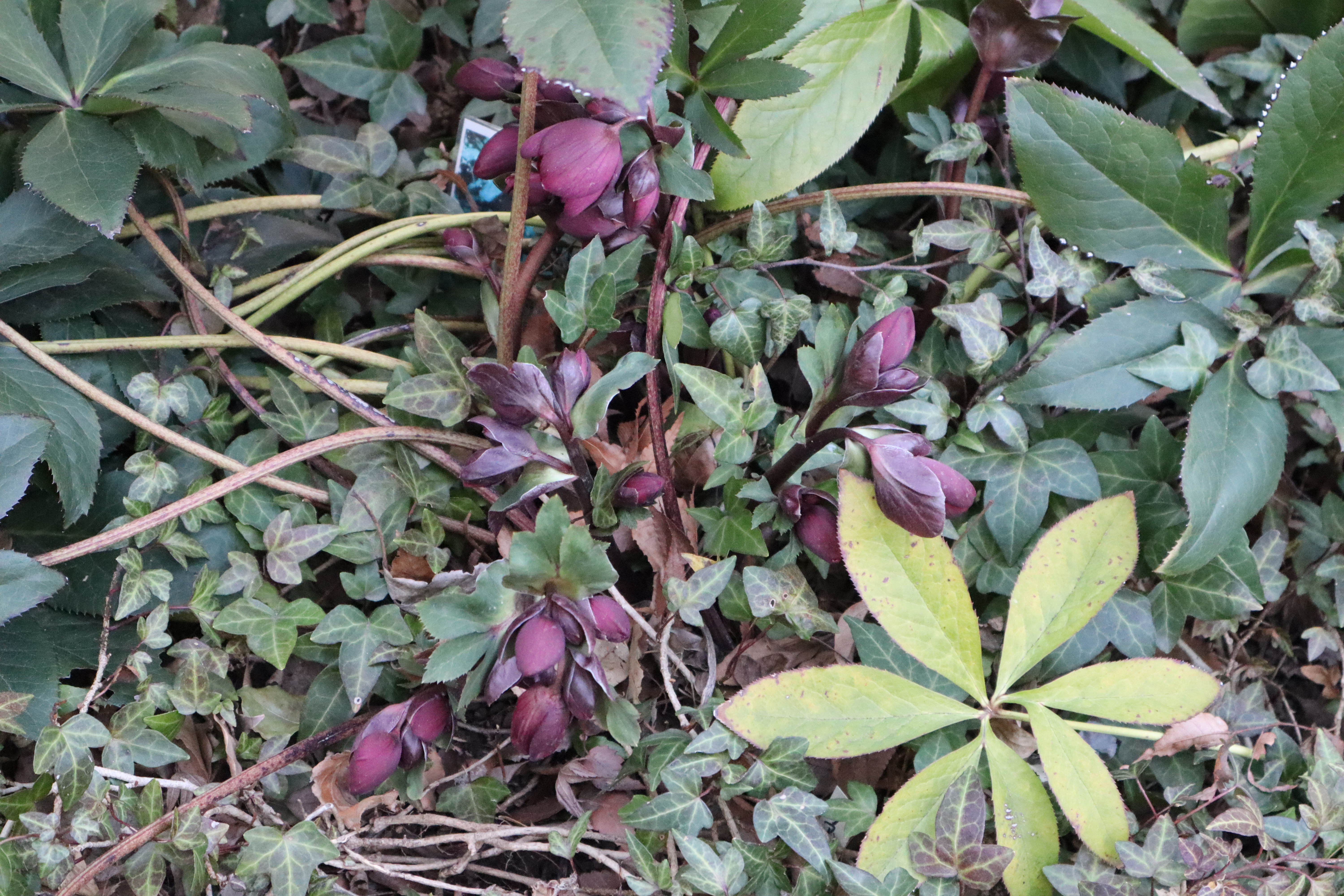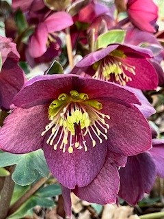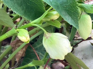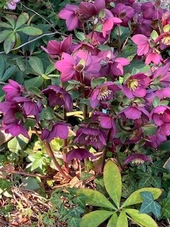 赤いクリスマスローズは、何と沢山の花をつけていますね。お花の寂しい季節にありがたい植物です。