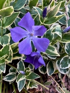 先週、一輪だけだったビンカの花が、ポツポツと咲き始めましたね。春到来!