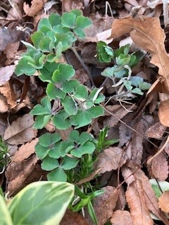 何とカラマツソウの葉が、ニョキニョキ大きく育っていて感激!シキンカラマツでしたよね。よく生きていてくれました。